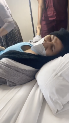 ‘Wait, where’s the nail lady?’ asked Cardi, and shortly thereafter another woman could be partly seen holding the Bodak Yellow hitmaker’s hand as she wailed.