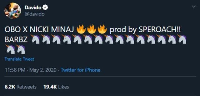 Nigerian singer Davido,The DMW boss has announced his upcoming new song featuring American female rapper Nicki Minaj.